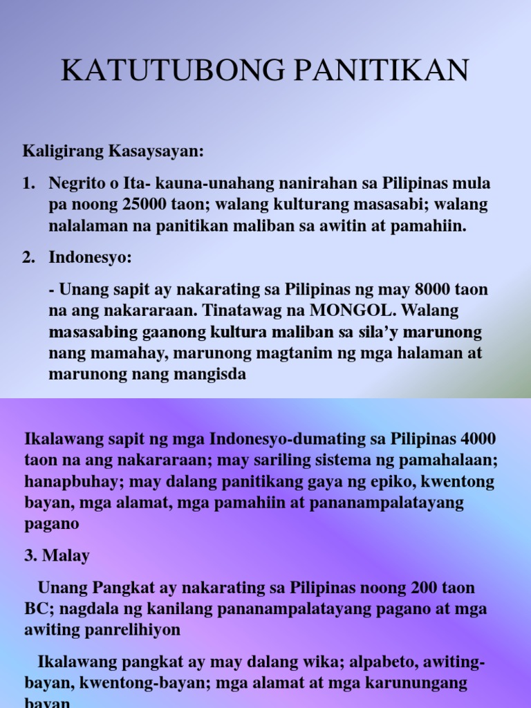 Ang paksa ng dulang ito ay nahihinggil sa paglalahad ng kaugalian ng isang lahi o katutubo. 1Sino ang namuno sa pagtatag ng. Nagsimula ang kasaysayan ng Pilipinas nang dumating ang mga sinaunang tao sa Pilipinas sa pamamagitan ng mga tulay na lupa 30000 taon na ang nakalilipas.